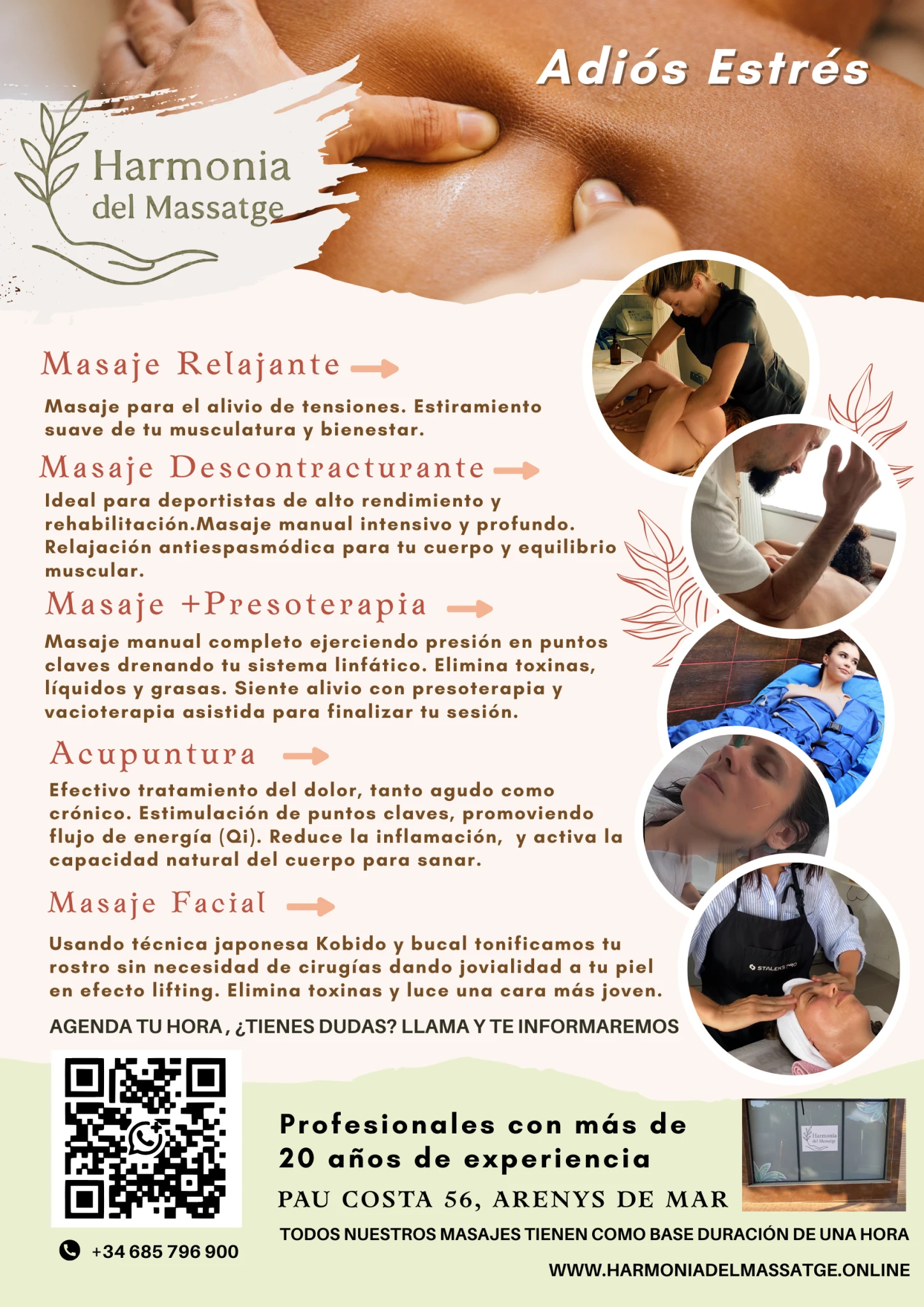 Masajes en Arenys de Mar, masajes descontracturantes y faciales. Un servicio altamente profesional para decirle adiós al estrés en 75 minutos de relajo profundo.